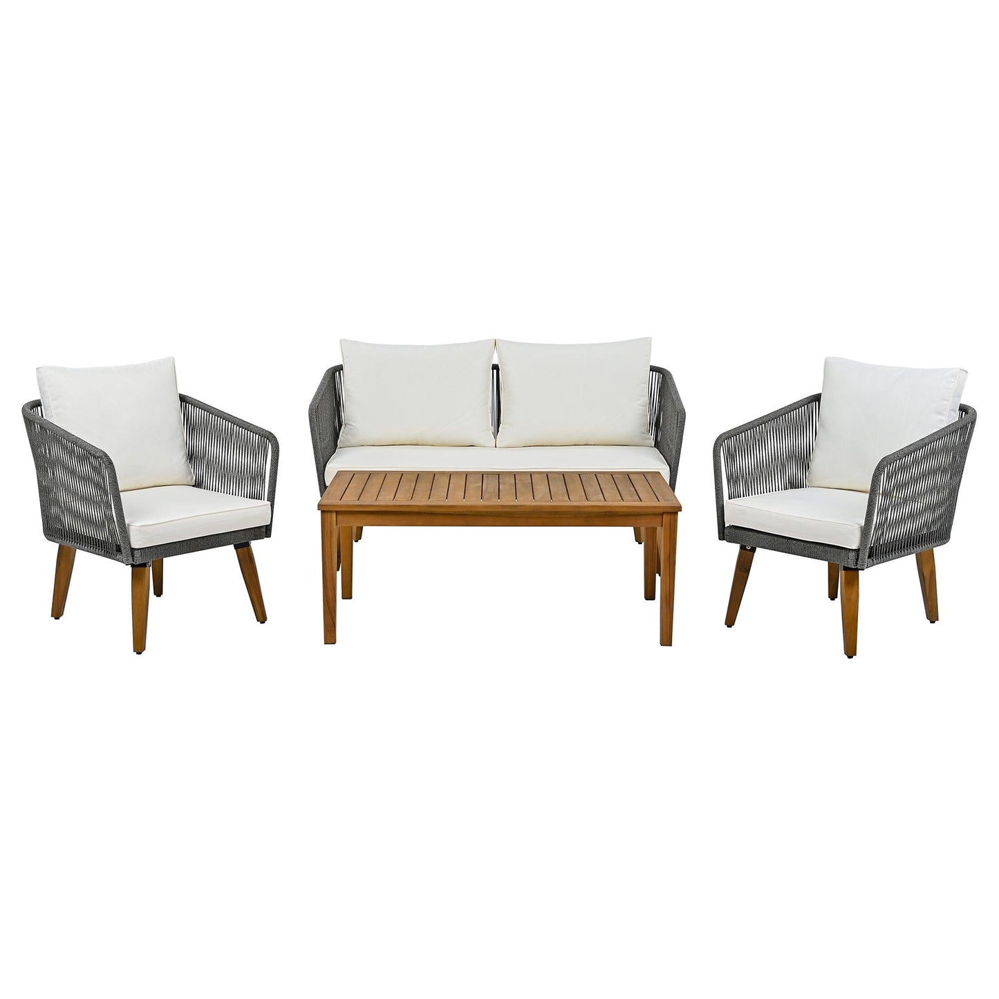 4 Pieces Outdoor Furniture Set with Loveseat, Patio Rope Conversation Set with Cushions for Backyard, Poolside, Garden