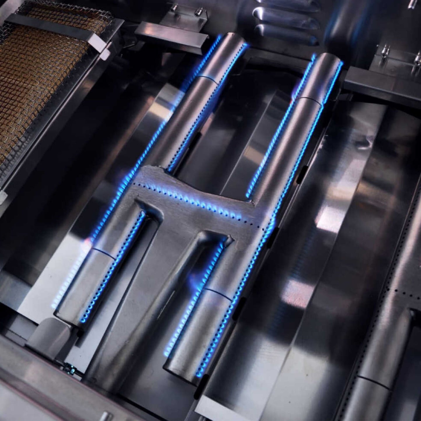 - Equipped with heavy-duty H-shaped cast stainless steel burners, this grill offers unmatched grilling versatility. The large infrared burner ensures perfect searing, creating a delicious crust on steaks and other grilled foods.