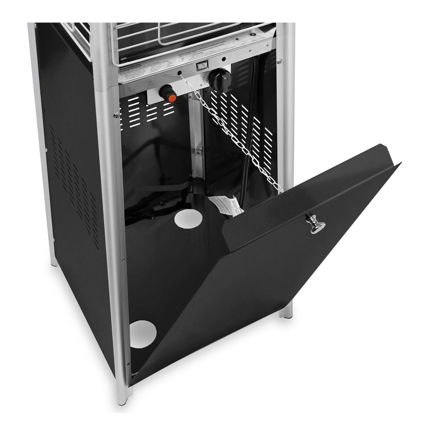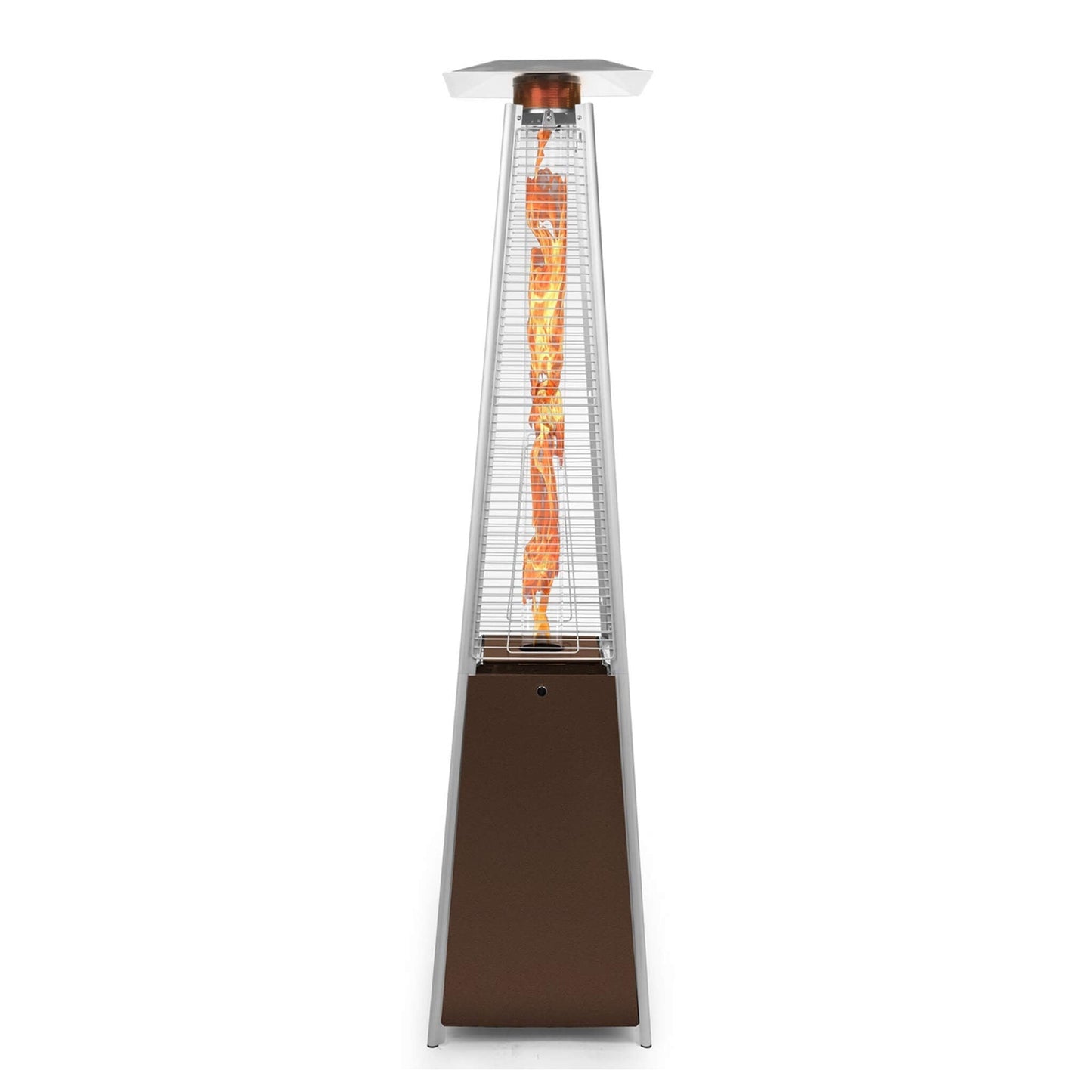- Expertly crafted from premium, high-grade steel and aluminum, this professional-grade, 7' 6" tall outdoor propane gas heater with a dancing flame in a pyramid-style column produces both radiant warmth and exquisite beauty.
