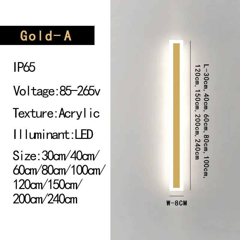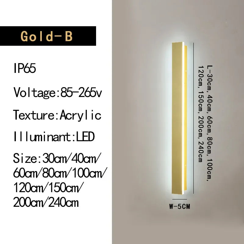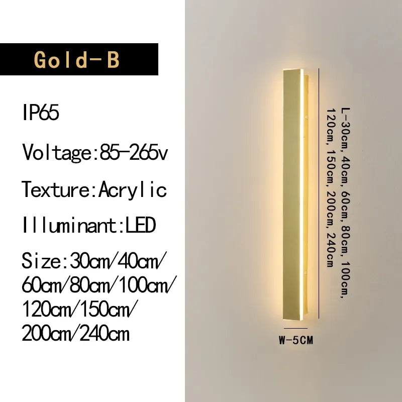 Elegant Golden LED Long Wall Light - Modern Outdoor Lighting for Country Villas, Courtyards, and Balconies