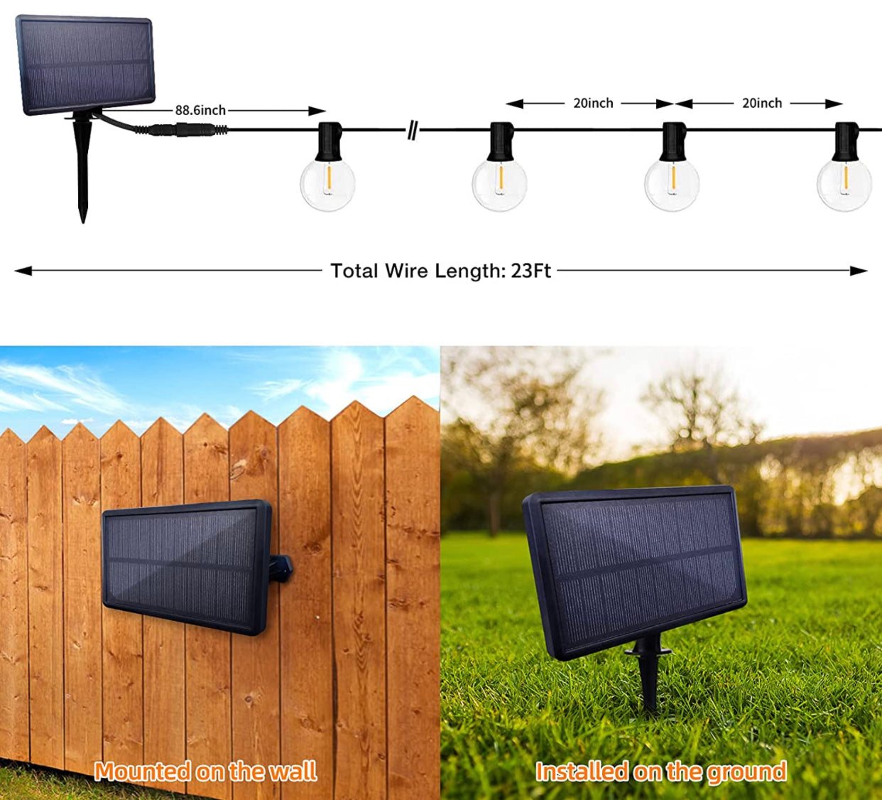 27 Ft Pro - Globe Solar LED Outdoor String Lights – Waterproof, G40 Retro Edison Filament Bulbs -Warm White