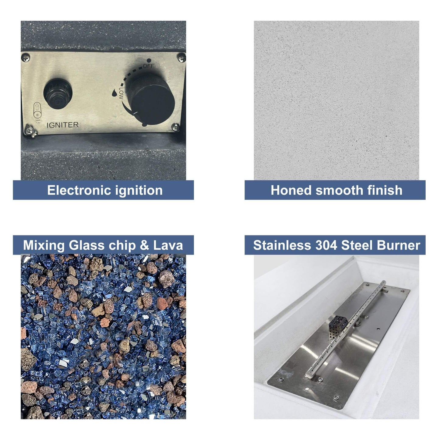 52" Outdoor Concrete Liquid Propane Rectangular Fire Pit Table (SAK84314)