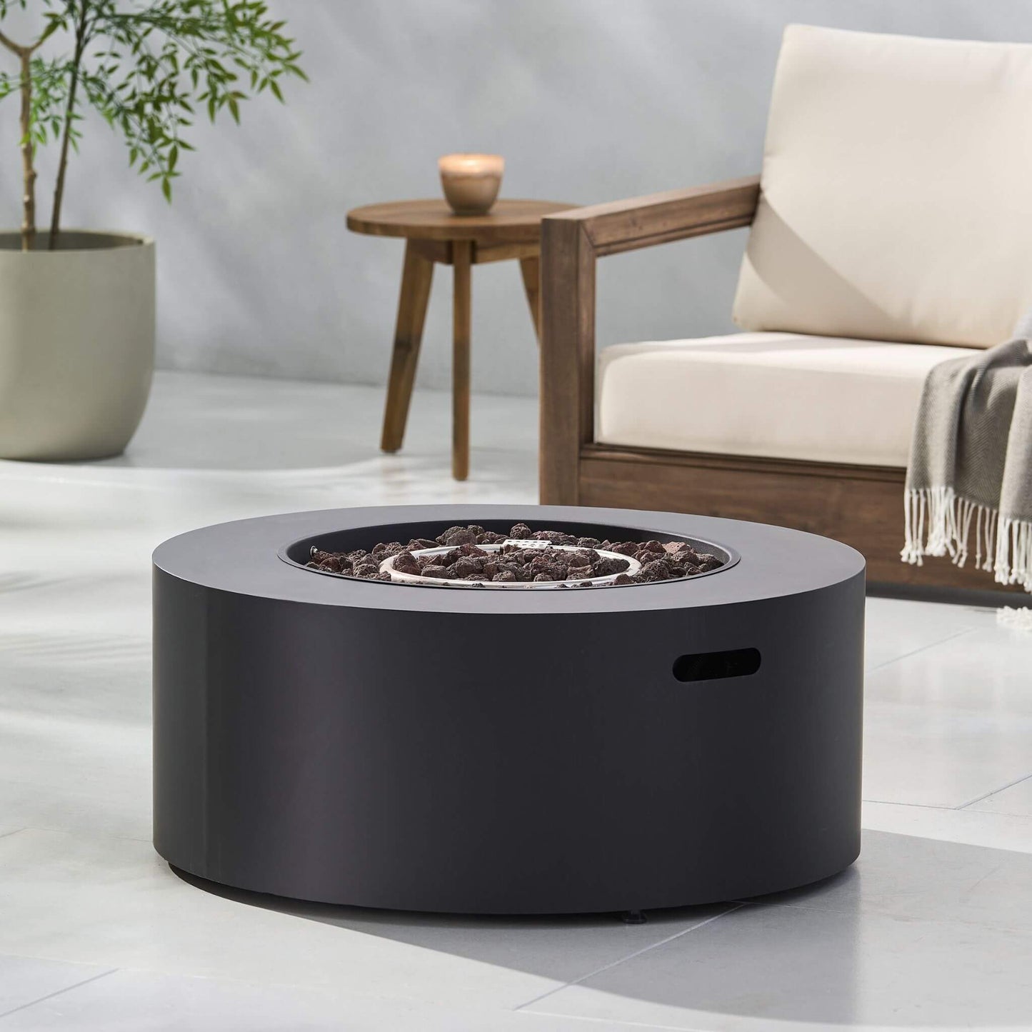 Regular price $749.97Transform your outdoor space into an elegant oasis with the Modern 32 Inch 40K BTU Round Iron Propane Fire Pit. Crafted from powder-coated iron with a sleek dark gray finish, this fire pit combines durability with timeless style. Designed to provide warmth and ambiance, it delivers clean and smokeless flames with a simple push of a button. Whether you're hosting a cozy gathering or enjoying a quiet evening under the stars, this fire pit adds a touch of sophistication and comfort to your patio or backyard. No assembly required—plug in a propane tank and enjoy the mesmerizing glow in minutes!