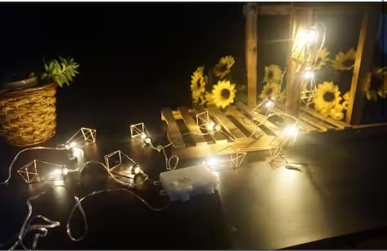 - String light is 12 ft. long (includes 10 metal-cage with LED's)