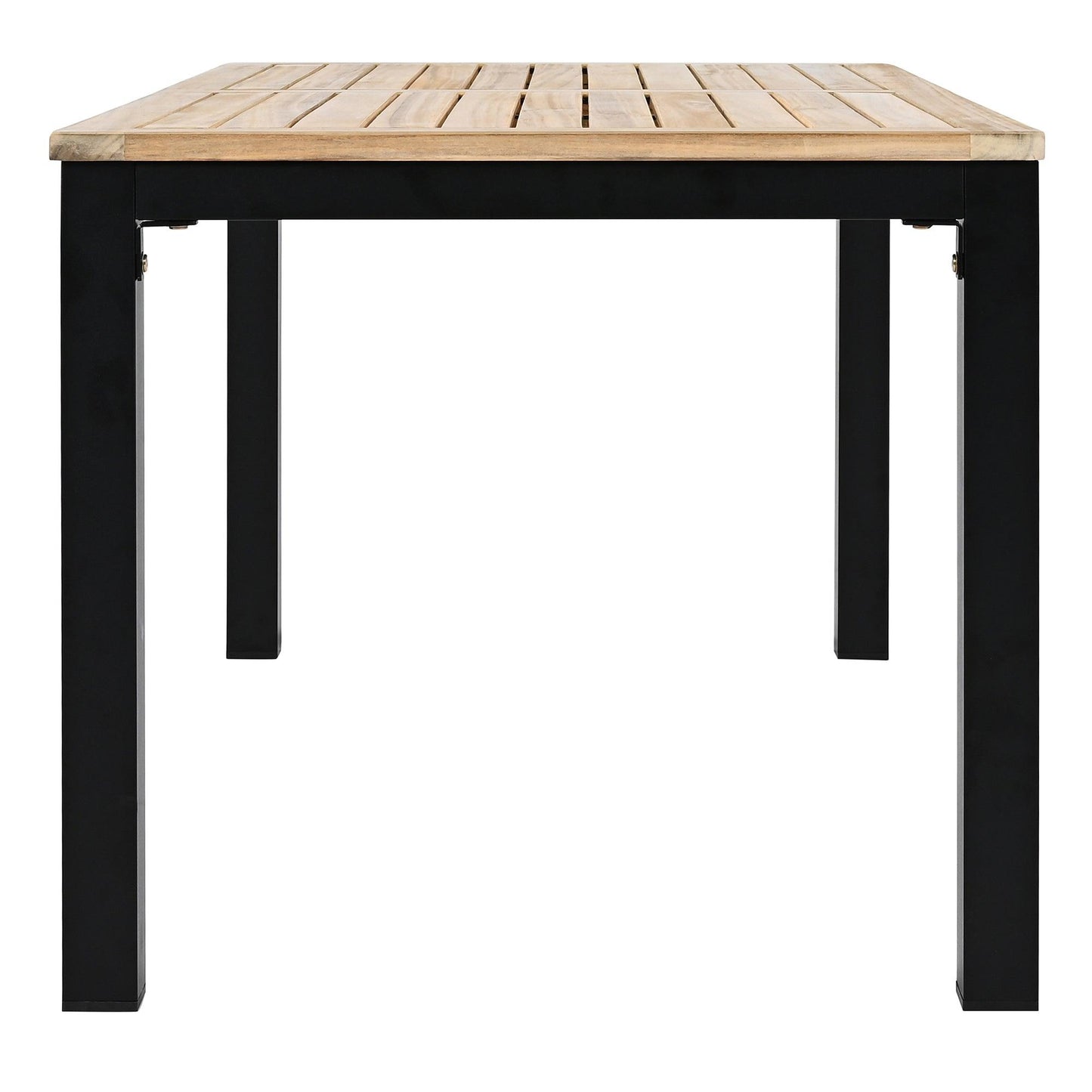 5-Piece Patio Furniture Set: This outdoor furniture set includes 1 table, 1 3-Seat sofa, 2 armchairs, and 1 bench—ideal for 6-8 guests. The sturdy iron frame paired with a solid wood structure ensures enhanced stability and a stylish appearance. The slatted wood tabletop adds rustic charm, combining durability with a timeless aesthetic.