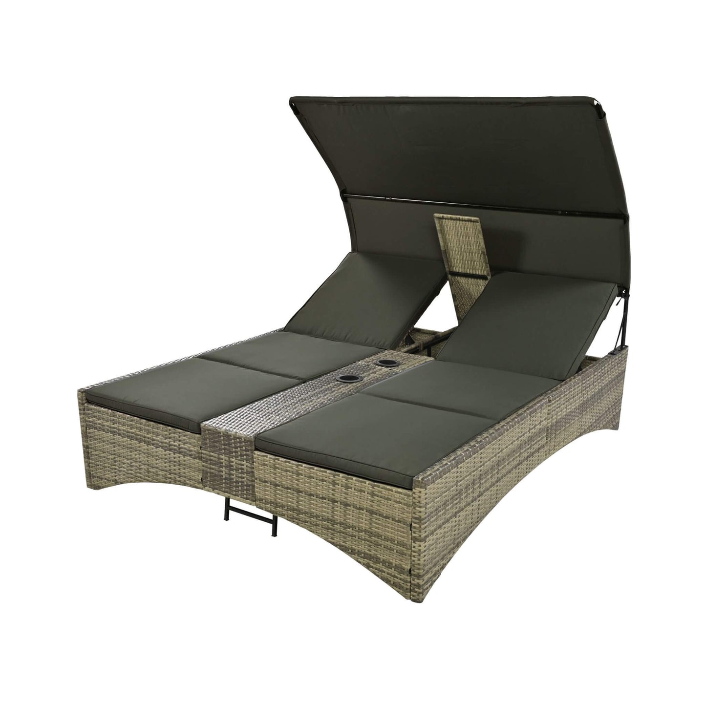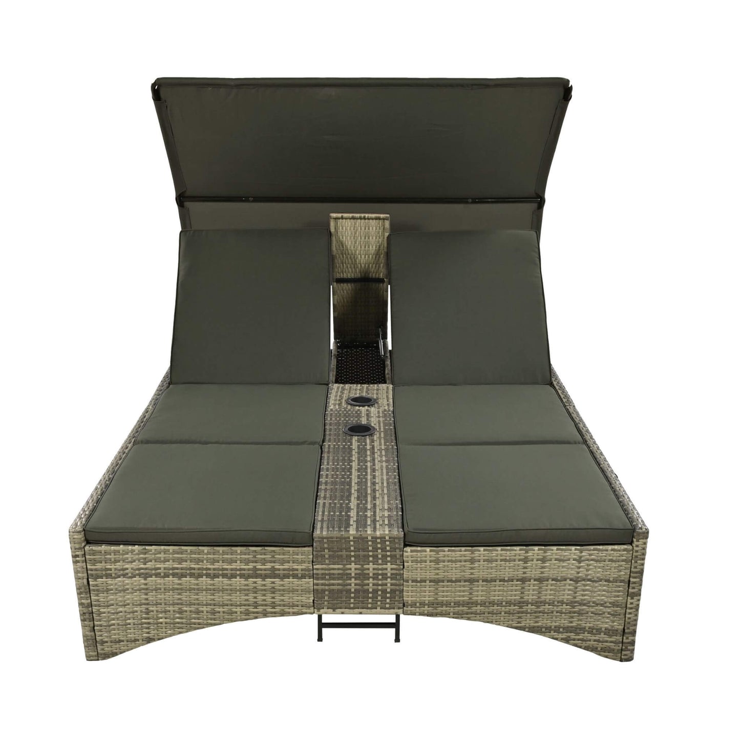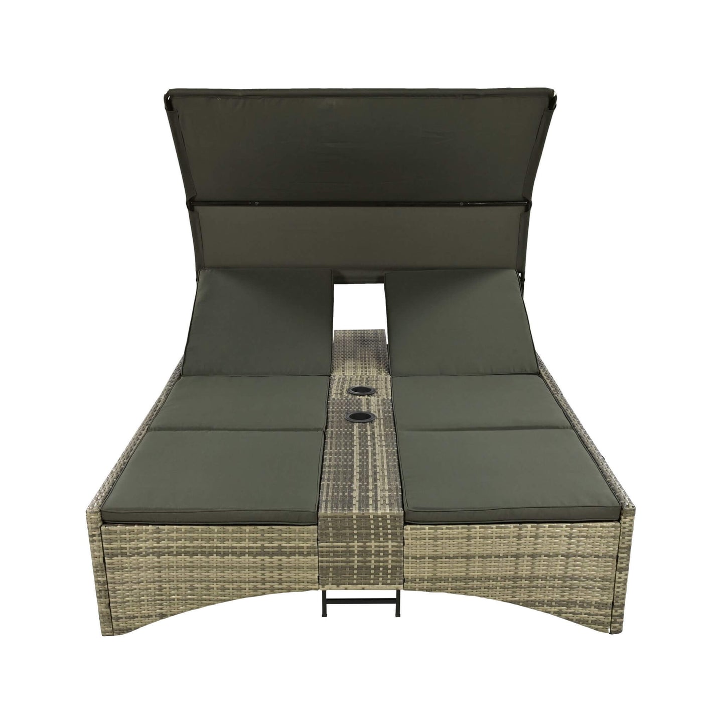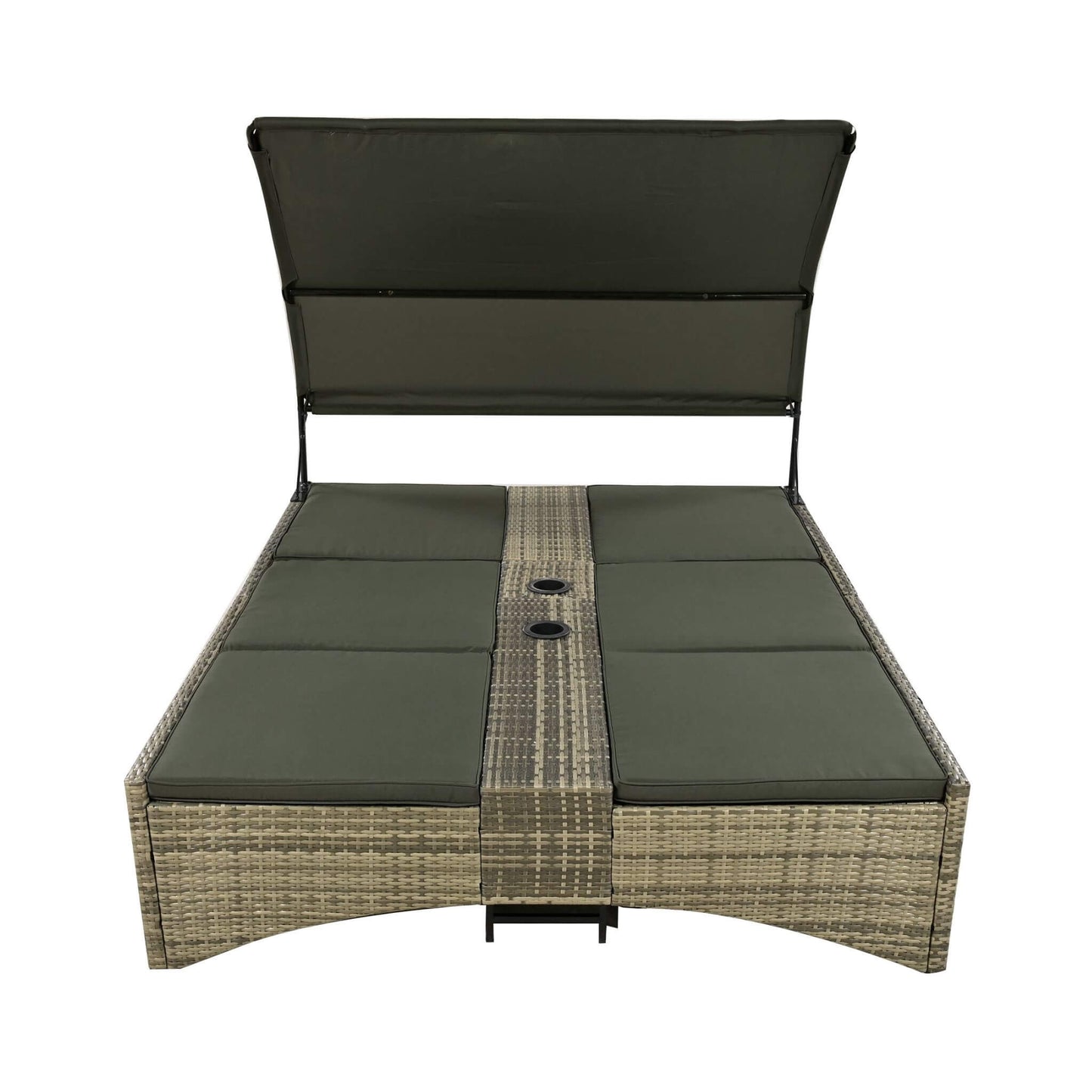 Outdoor Rattan Patio Daybed With Adjustable Backrest, Canopy Roof, Storage Box And Cup Holders (SAK54220)