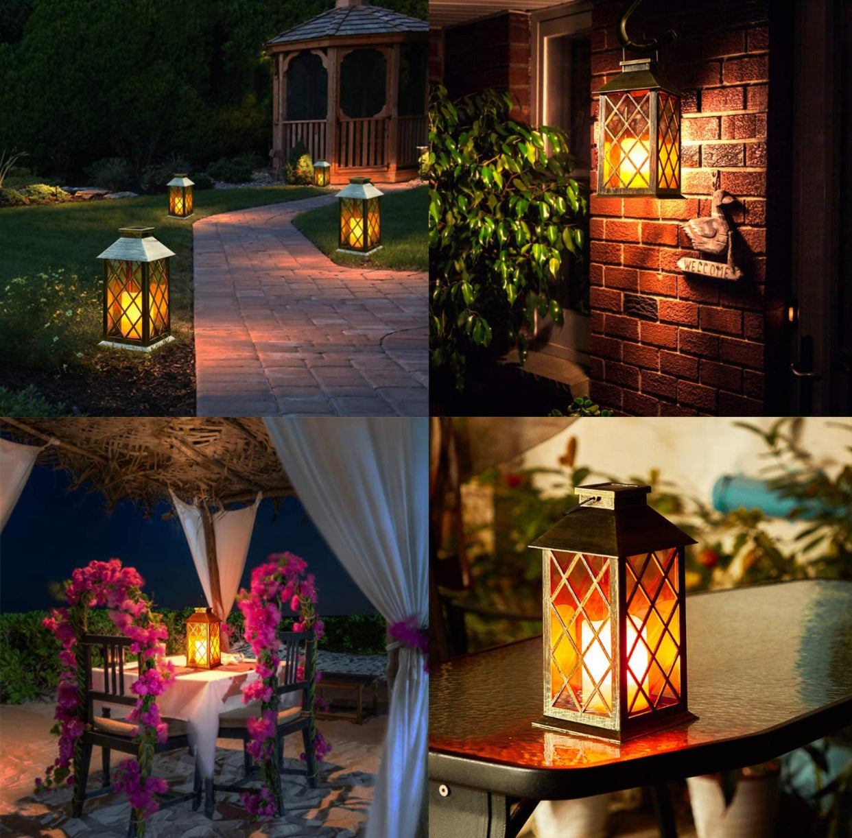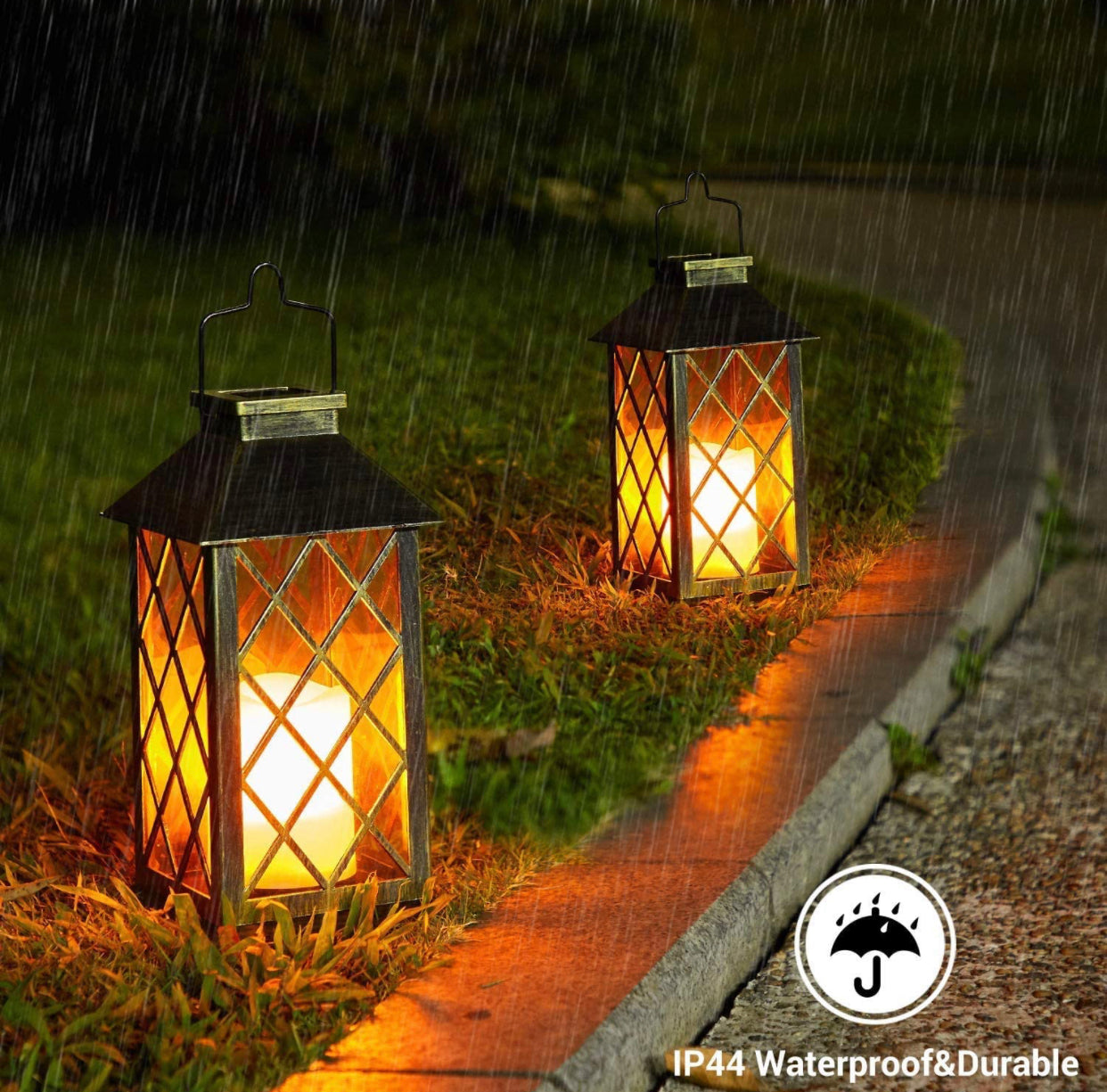Solar Candle Lanterns Outdoor, 2 Pack Waterproof, LED Lanterns Solar Powered with Handle, Flickering Flameless Candle Lights